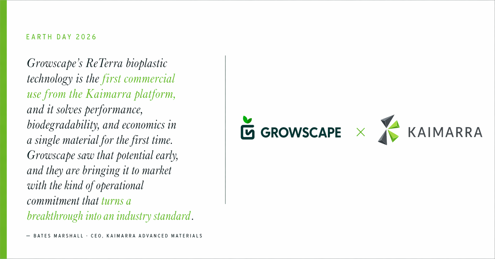 Growscape is not a niche player. It is North America's leading horticultural container manufacturer, and the ReTerra product line it announced today is the first commercial family of products built on Kaimarra's patented chemistry. The deal behind it — a $1.8 million binding purchase order under a three-year master supply agreement — gives Kaimarra something most early-stage materials companies spend years chasing: a large, named customer, a real contract, and a product already running on production lines.