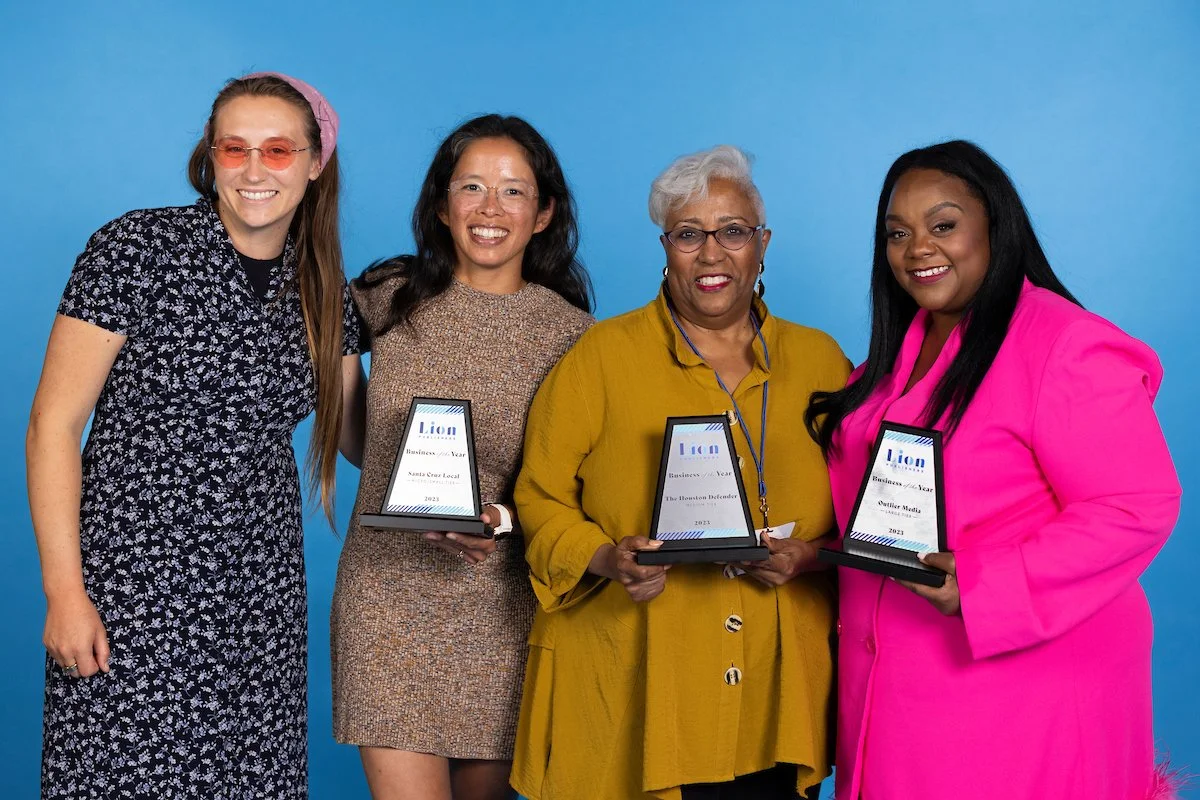 LION Business of the Year, winners: Santa Cruz Local, The Houston Defender, and Outlier Media.