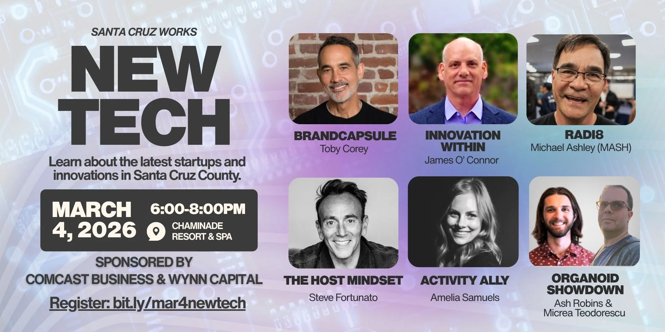 Join us for an evening of connection and cutting-edge insights at the next Santa Cruz Works New Tech event! Doors open at 6:00 pm with music by Cruz Control. Ticket purchase includes appetizers, live music, networking. Beverages available for purchase.