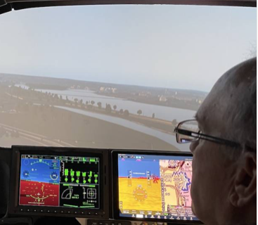 AIN editor-in-chief Matt Thurber tries out the fly-by-wire flight controls in Joby's eVTOL simulator.