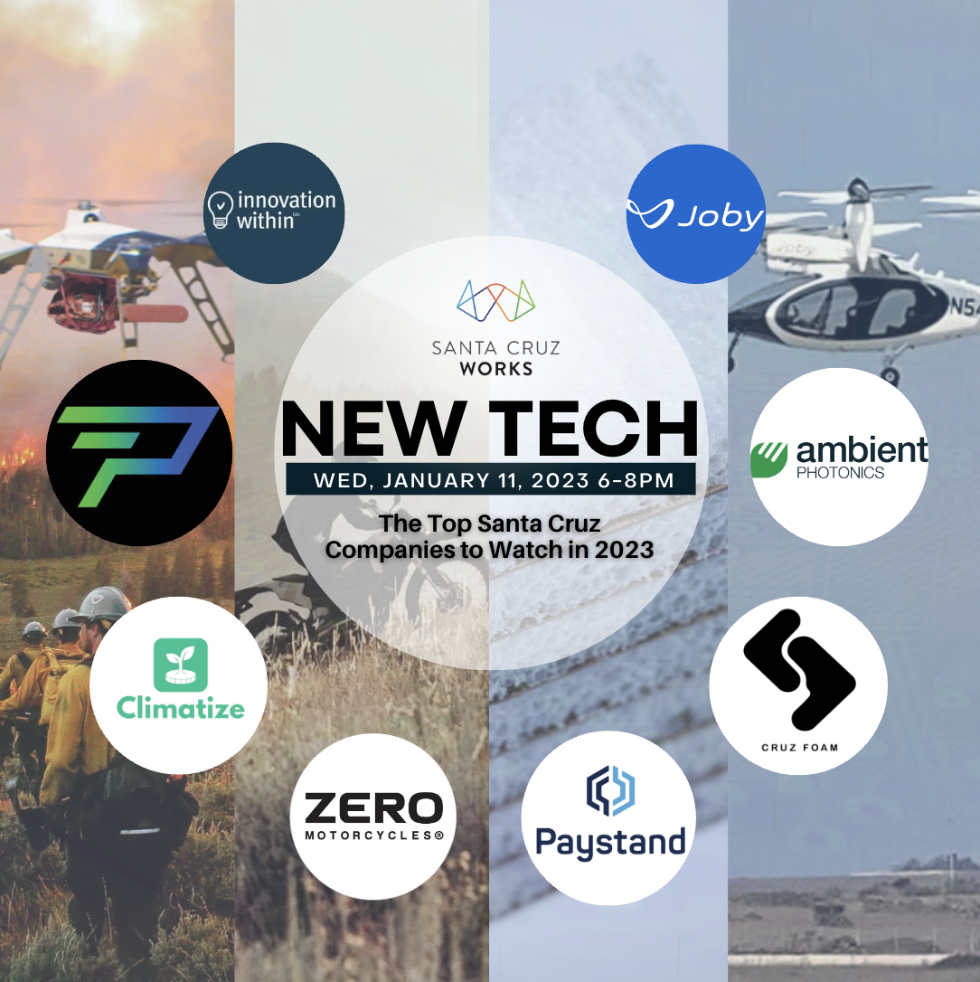 A little more than 100 people braved the rain and flooding to attend the first Santa Cruz Works New Tech of 2023. Eight companies presented their truly inspirational journeys, their visions for the year, and open job positions.