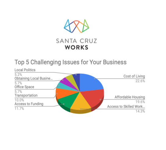 Every 2-3 years, Santa Cruz Works (SCW) conducts a survey of local businesses to understand their challenges. How many are forecasting revenue growth? What % are still driving The Hill? Are there AI companies?